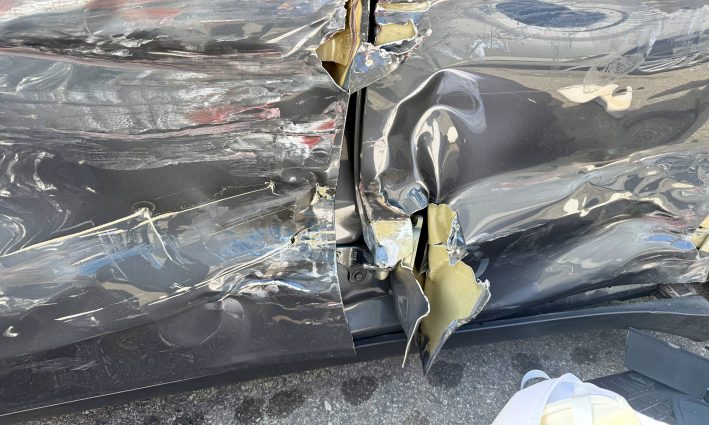 The traffic light was off. And as I proceeded with caution after stopping, a V8 Dodge Durango was coming from the cross street. I was lucky that I had cleared 75% of the intersection and that the brunt of the truck’s full-frontal impact went towards the rear driver-side passenger seat, though it still caught a good chunk of my door.