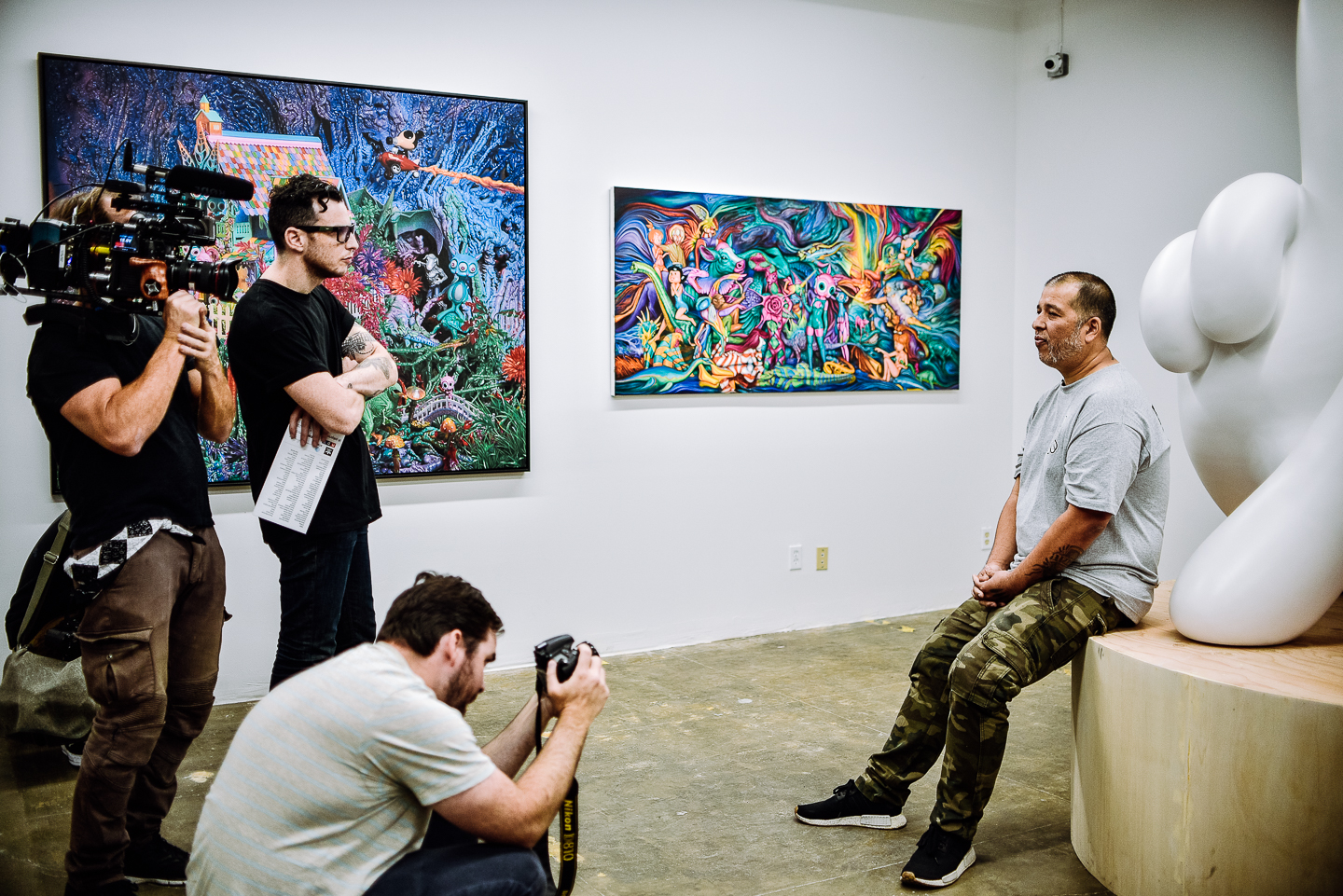 The Godfather of Los Angeles graffiti, Chaz Bojórquez, talking with the media about the show and his work on display for BTS.