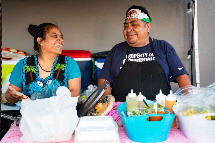 Initially, Lupita and Mario are both from El Valle in Oaxaca, Mexico, like many Oaxaqueños on the west side. But, you could say that Mario and Lupita love the coastal food life. Besides working close to the beach, they travel to Tijuana and Baja at least twice a month just to eat. It’s why during the pandemic, when work slowed down for them, they, like many others, decided to sell food on the streets. They chose not to make just any tacos. They went with their favorite ones, Baja-style tacos, because, according to Mario, you don’t see these styles of tacos on the streets, and when you do find them, most don’t make them right.