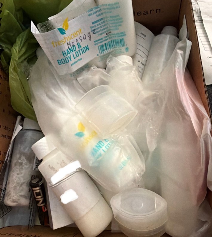 About five or six weeks into the vigil, they noticed that something had been thrown over the fence. The organizers ran over to where the object had landed, and saw that there were A-numbers written on it. Then, the next week came the lotion bottles. Then, a shampoo bottle with more A-numbers. Some of the objects thrown over would get stuck in the fence.