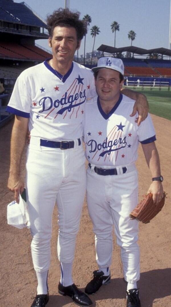 A Photo of Kramer and George Costanza at Dodger Stadium Wearing Hollywood Stars Games Uniforms