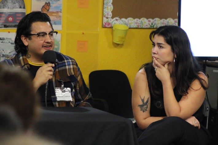 Speaking to a captive audience of dozens at the headquarters of Gente Organizada in Pomona, the young man from East L.A. shared his personal story of how a newfound love for hardcore led him to Mosh For Youth. The nonprofit organization provided him with a scholarship to attend the University of California Riverside where he is majoring in history and hopes to one day become an educator, much like Victor Campos, his mentor and the founder of MFY.