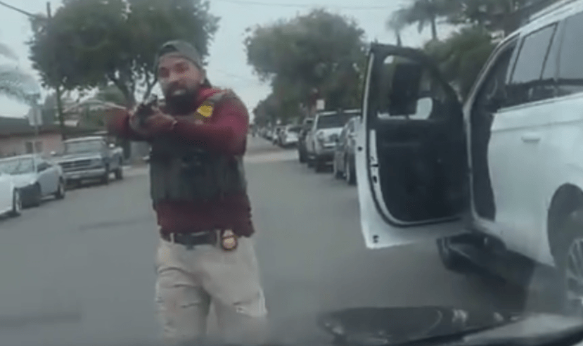 - Santa Ana: Community watch members were seen following and legally documenting the roving raid off First and Lacy while honking and alerting the community. Around 11 a.m. on W First St and N Western Ave, an agent drew his weapon towards a community watch member who drove beside an agent. L.A. Taco reached out to the community watch member, who stated that she was okay and had this to say: “Anyone watching our videos and witnessing what we are doing on the ground should take a moment to reflect. After four months, we cannot stay behind our phones and normalize this harm.”