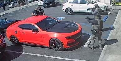 - Van Nuys, Sherman Way & Kester: According to witnesses and testimony from one of the victims, ICE had targeted two vehicles down the street. When they slashed the tires of one vehicle, the occupants of the second vehicle, a recent model Camaro, left the scene. When they saw they were being followed by 3 unmarked vehicles, they pulled into the Mariscos Corona parking lot and were quickly surrounded at gunpoint. Agents broke one of the vehicle's windows and dragged two men to the ground. The female passenger, who is the driver's pregnant girlfriend, yelled repeatedly at the ICE agent attempting to pull her out of the vehicle that she was pregnant and not to touch her. The two men were taken into custody.