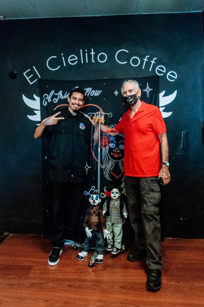 As Cain explains it,” El Triste is actually working now. People hire him to be a part of music videos, and he is getting me jobs.” One of those videos is “Nobody’s Clown” by Los Yesterdays, which has nearly 3 million views on Youtube. With El Triste’s popularity growing, fan art began to take over their Instagram’s DM mentions. With so much incredible art, the puppet master had a great idea of holding an art show dedicated to El Triste and La Smiley featuring all the artwork that celebrated his creations. The art show was held last weekend at El Cielito Cafe in South Gate, California. This was a once-in-a-lifetime event and showed how much these marionettes still connect to people living in deep Los Angeles communities in 2021.