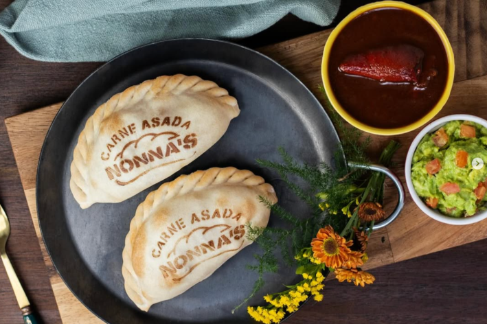 Other filling options include carnitas, shrimp, salsa verde chicken, and their dessert empanadas, which include dulce de leche and guava empanadas. And they all come engraved with Nonna's signature mark.