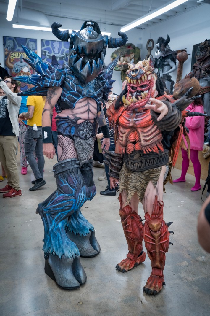 Walking through the gallery, I’m told the precursor to this show was to reprint the highly sought-after book of the same name, “Let There Be GWAR,” written by Gorman and edited by Beyond the Streets creator/publisher Roger Gastman. A friend connected the two after hearing the band’s vision to showcase their full narrative and its sister collective of costume and stage design, Slave Pit Inc. After a few years of concept planning and running through drafts, the book was officially published in 2015 by Gingko Press.