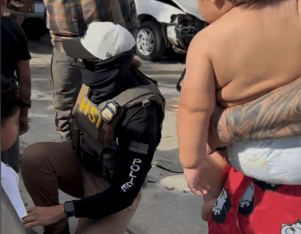 A child can be heard crying out “Papa!” in agony while reaching out for his father who is being dragged into a SUV in a video posted by @760today on Instagram. At one point, the agent grabs and then pin the child.