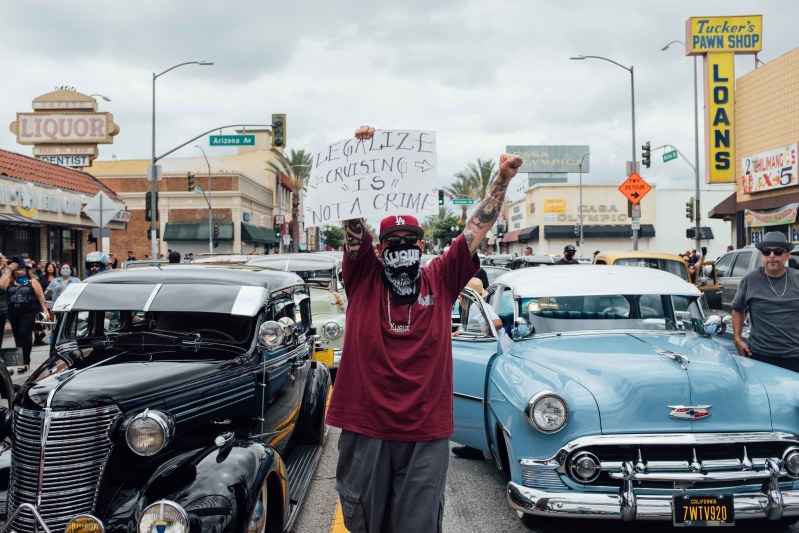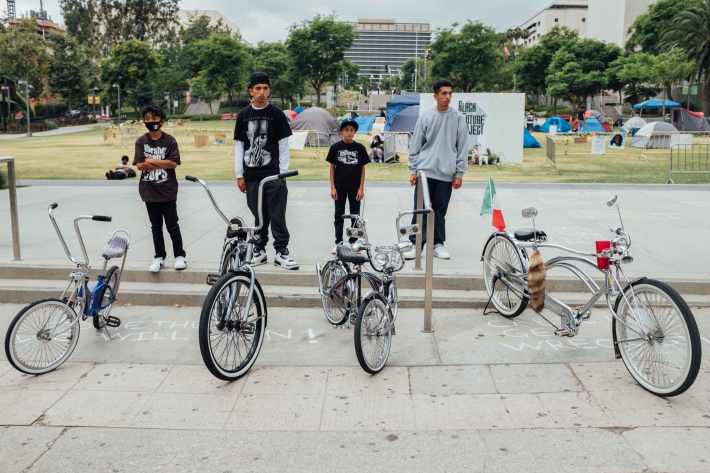 [dropcap size=big]L[/dropcap]owriders from all corners of Los Angeles assembled at City Hall yesterday to demand social justice and unity in the city. The ride was organized by BLVD NIGHTS. More than 100 lowriders gathered in Pico Rivera and stopped underneath the historic Whittier Boulevard arch on the way to City Hall. Families, car clubs, and Estevan Oriol were in attendance and the cruise ended with a street performance by Kid Frost performing 'La Raza' on the steps of City Hall.