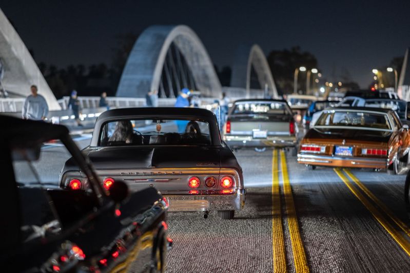 It's been six years since the 6th street viaduct was closed and a lowrider crossed over, but that changed Friday night at approximately 10:30 PM. A group of lowriders and classic cars met at Foster's Freeze on Whittier Boulevard at 9:30 PM, just a few blocks down. The cars rolled out and headed for the bridge entrance just before 10:30 PM. The caravan consisted of rides like Impalas, Mini Trucks, Bombitas. Car clubs such as Just Memories, Elegants, and Techniques, and more were present and ready to create cruising history.