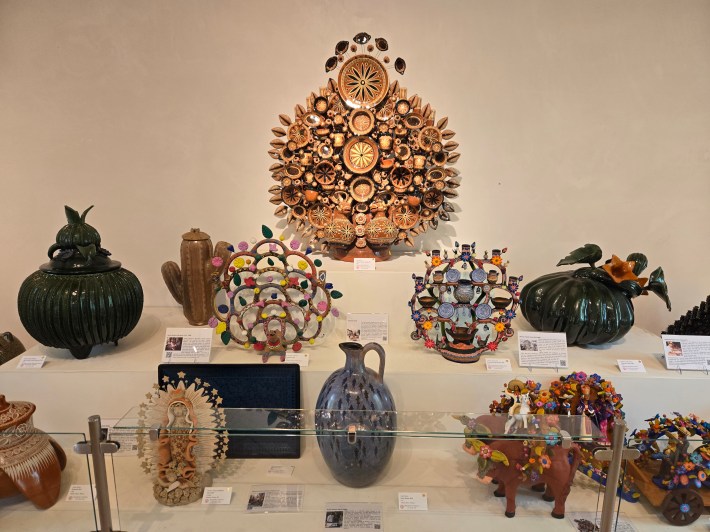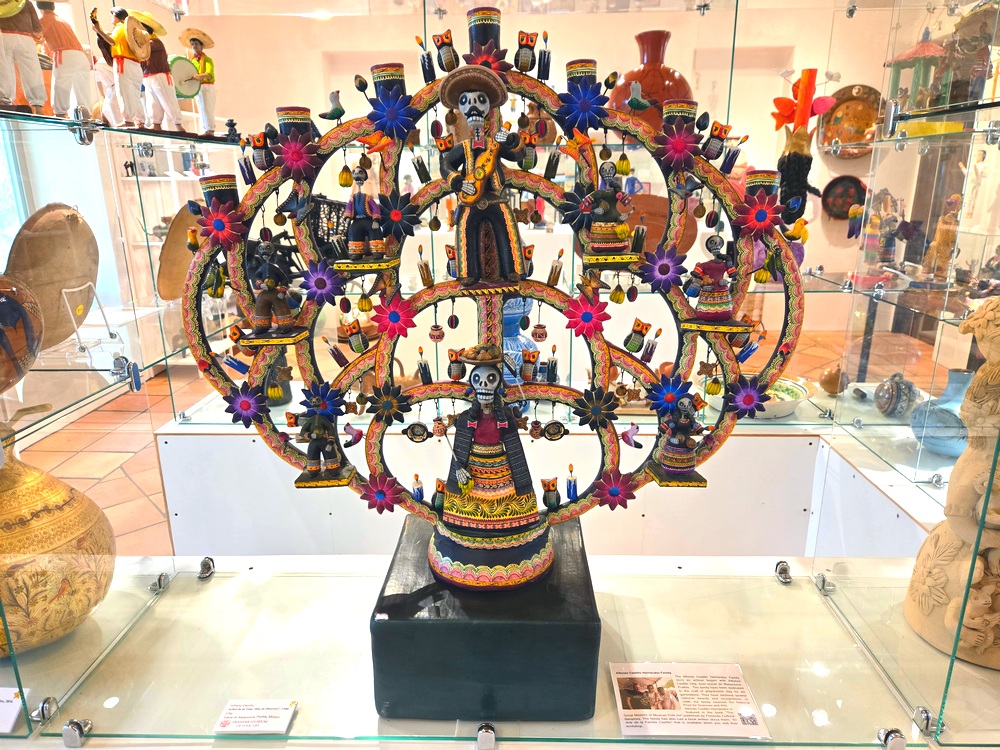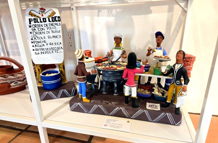 You'll find stirring displays of Oaxaca's barro negro pottery and vibrant, Tonala-burnished white clay bowls, ceremonial costumes from Guerrerense processions, beaded Nativity scenes, carved and gilded gourds, ceramic fruit vendors and smiling demons from Ocumicho, and more.