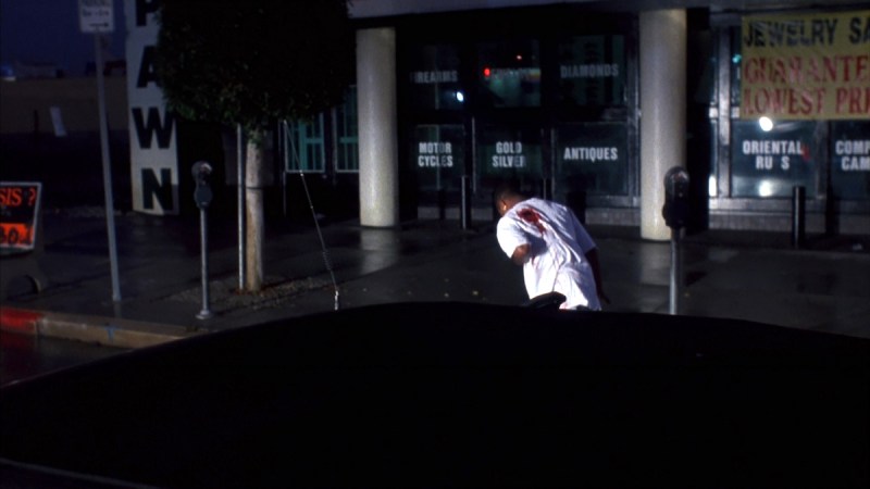 Menace II Society, about a recent graduate of Jordan High School in Watts who struggles with becoming trapped in the violent gang culture of which a contemptuous society has deemed him fit, is one of the darkest – both figuratively and literally – not only of 'hood film but also of L.A. films in general. Though comparisons are naturally made between Boyz N the Hood and Menace II Society, the latter might actually be more akin to films that depict a seedy and malevolent nighttime underbelly of Los Angeles like L.A. Confidential (1997), Collateral (2004), and Nightcrawler (2014). Where Dennis Hopper’s Colors (1988) and Singleton’s film were depictions of an L.A. simmering in what was to boil over into the L.A. riots, Menace was shot about six months after the riots ended. Boyz’s sun-drenched neighborhood of Cimarron St. gave way to the midnight joyrides and luridly lit interiors of Menace.
