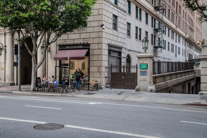“I can’t think of another L-shaped alley like that,” says Hargrave. “And that’s also what kind of messes with people’s minds. The alleys in downtown L.A. are all bone straight between this street and that street.”