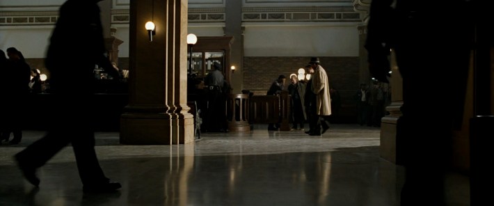 Two years before the critically acclaimed neo-noir classic L.A. Confidential (1997) transformed what is today the Pacific Electric Lofts into a 1950s police precinct, it was used in SE7EN to make up part of a timeworn police station complete with offices, a bullpen, fingerprint lab, and corridors lined with glazed doors and transom lights.