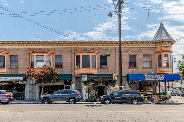 The scene was shot in front of a string of stores along San Pedro St on the edge of the Flower District.