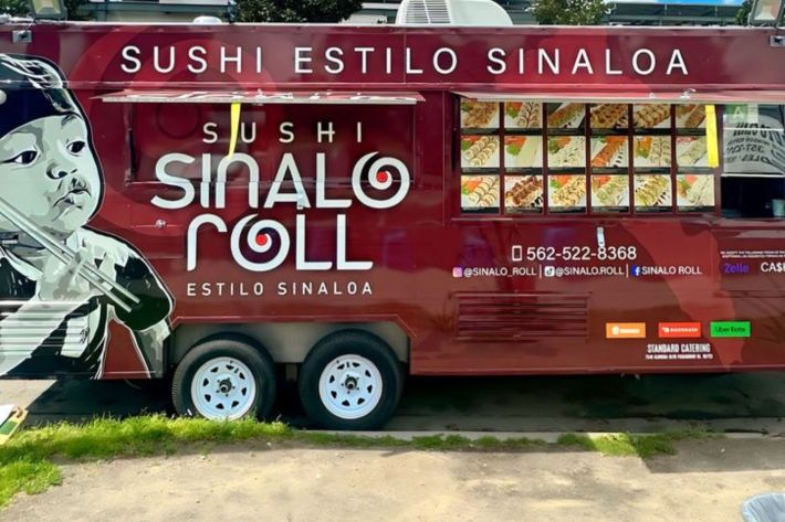 While some other food down this street is much more familiar, Sinalo Roll, the red food truck in front of East Rancho Dominguez Park, is the only one serving sushi estilo Sinaloa. This truck has unique offerings, from more common rolls, like the California roll, to its Sinaloan rolls, like their "Volcan," which includes battered shrimp and a chile tornado inside.