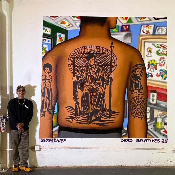 Superchief’s fanbase is still growing, putting on shows that Dunleavy hopes will allow different groups of people to find community in art. Shows span multiple genres, displaying underground graffiti culture, Chicano pride, political protest, fashion, and the queer community. Superchief’s most recent exhibition featured a collaborative show from Dead Relatives Magazine, showcasing Los Angeles’ vibrant punk street culture.
