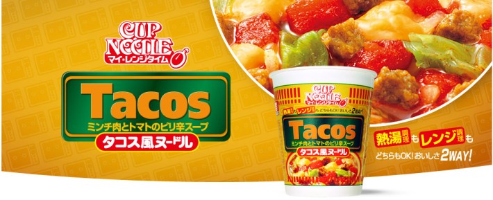 Tomato soup with the flavor of meat, the smell of tortillas and topped with spices. Also: cabbage, tomato, cheddar cheese, onion, made into ethnic and spicy pungent taste. Can also enjoy in the microwave, "taco-style noodle" My Cup Noodle range time!