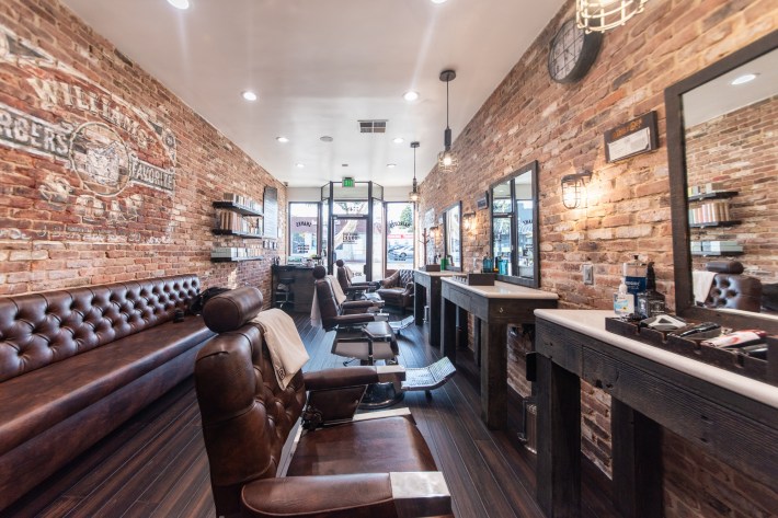 The Barber Den LA opened last February after Halem’s complete makeover of a small warehouse space. It’s a markedly beautiful room next to a cool coffee shop, a barbershop in the classic model that shares the same Little Odessa block as West Hollywood’s famous Studs at the Pussycat Theater.