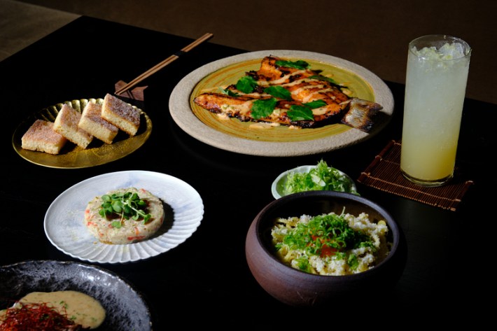 The menu includes kimbap with ingredients like Aussie wagyu beef and spicy bluefin tuna; a savory doughnut filled with Japanese curry; fried chicken with chiles and pickles, as well as Korean wings; marinated Cape Grim filet mignon and Creekstone Farms' ribeyes; maitake and king oyster mushroom noodles; slow-cooked spareribs; and grilled striped bass.