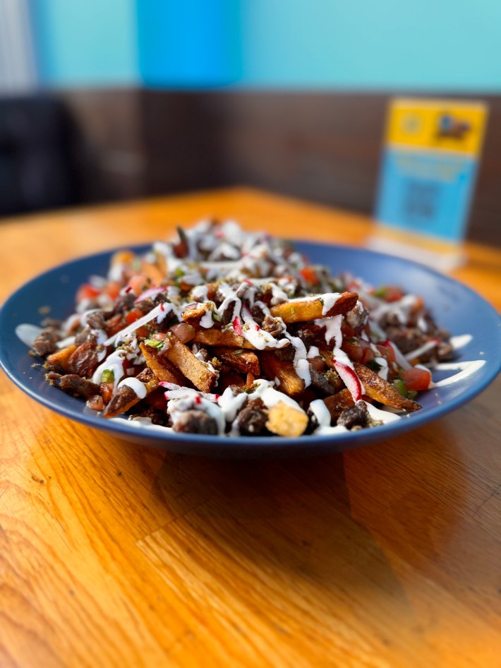 A stand dedicated to Peruvian street food stand has been setting up in front of a Long Beach Northgate over the last 13 months. Sazon Con Corazon cooks everything before your eyes, including barrel-smoked chicken and ribs; ceviche made with halibut; salchipapas with lomo; sandwiches with your choice of lomo or chicharrón; causa; and stir-fried arroz chaufa and tallarin (noodles) with chicken or lomo grilled in a wok over an open flame.