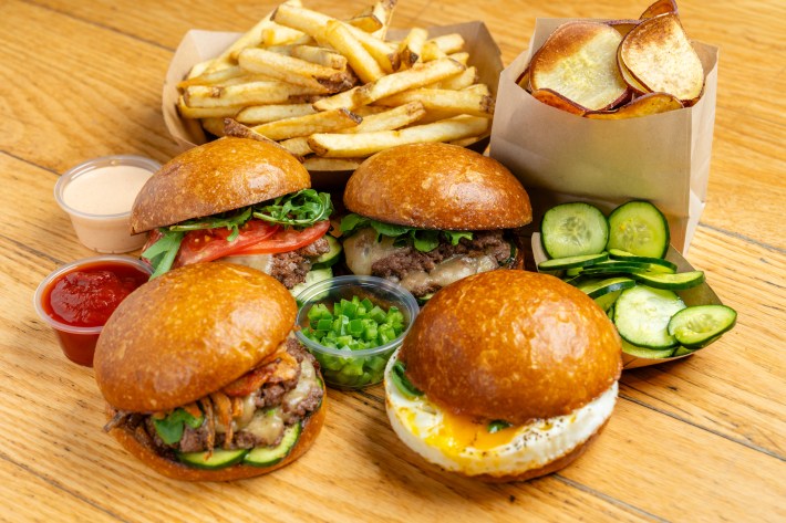 Fries are made with Chipperbec potatoes and chips with Japanese sweet potatoes, while “Mamacita fries” come topped with jalapenos, onions, and housemade queso. Shakes are made with nothing but Straus ice cream and whole milk. The space also features its own market, where guests can purchase ingredients used in the food.